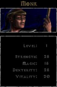 Ke třem postavám z Diabla (válečník, zloděj, kouzelník) přibyl nový hrdina. Novým přírustkem se stal mnich. Mistr boje beze zbraně si velice dobře tyká i s kouzly, a proto ho můžeme nazvat mixem mezi válečníkem a kouzelníkem.
